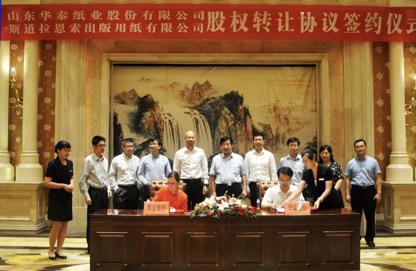 十三年前,即二OO六年,华涛律师经过一年多谈判,协助客户--上交所上市公司华泰股份(600308)与全球五百强之一、赫尔辛基和斯德哥尔摩交易所上市公司Stora Enso共同设立合资公司山东斯道拉恩索华泰纸业有限公司,将超级压光纸(SC纸)引入中国。十三年间,华涛邓炜律师团队,始终作为华泰股份的常年法律顾问,为华泰股份提供常年及与投资、合资合作相关的非诉法律服务,伴随华泰股份成长。十三年后,合资方基于自身的公司策略,决定向华泰股份出让其持有合资公司股权(占合资公司全部股权的60%),团队华涛律师、邓炜律师、汪幸仪律师、高洁律师助理共同协助华泰股份完成了该笔并购。团队承担了交易结构设计、中英文交易合同起草、谈判主谈、中介机构协调与组织、经营者集中的反垄断申报、员工问题解决方案制定、重要谈判的英文翻译等工作,对促成交易的达成起到了重要作用。