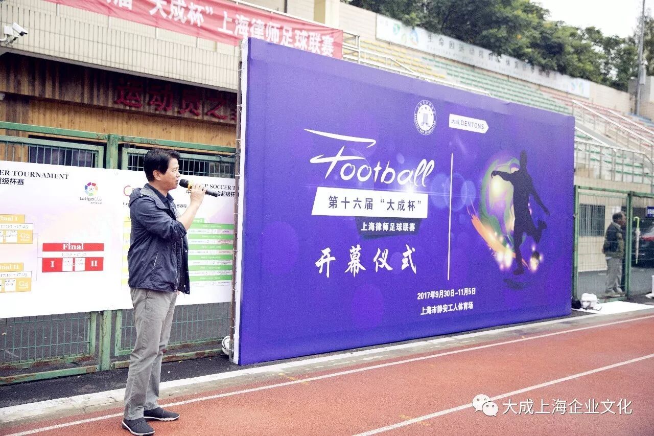 9月30日,由上海市律师协会主办,北京大成(上海)律师事务所承办并冠名赞助的2017“大成杯”第十六届上海律师足球联赛在静安工人体育场正式拉开序幕。开幕式由上海市律师协会会员部主任曹频主持,各参赛球队球员及裁判员代表共同参加了当日的开幕式。开幕式在大成上海啦啦队所带来的劲歌热舞下拉开序幕,北京大成(上海)律师事务所主任、党委书记陈峰律师首先致开幕词,他表示承办此次比赛,在丰富上海市律师协会文体活动的同时,也希望能将文体活动作为上海市律师协会和各大律师事务所之间互动交流的纽带,成为广大律师们娱乐健身、团结拼搏和公平竞赛的良性平台。随后,上海市律师协会副秘书长王旭峰发表了热情洋溢的讲话,他动员球员们拼搏协作,共同为大家奉献一届精彩的足球赛事。开幕式最后,北京大成(上海)律师事务所执行主任、党委常务副书记吴晨尧律师为揭幕赛开球。
